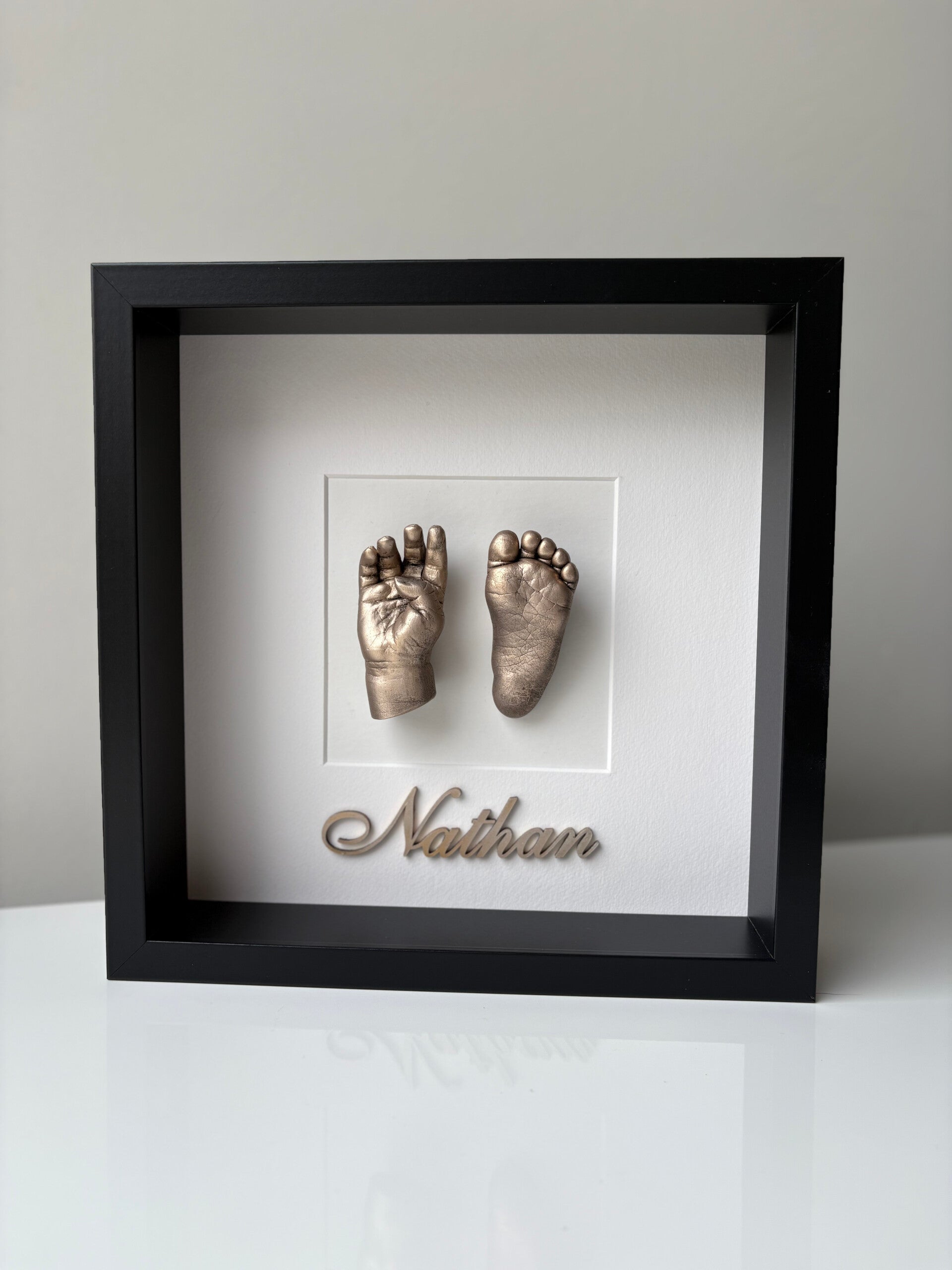 Dit type babycasting legt het handje en/of voetje van je baby vast als een liefdevolle, blijvende herinnering, samengesteld in een dieptekader.